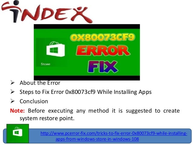 - Repair Error 0X80073Cf9 While Installing Apps From Windows ... . In Case The Previous Method Fails To Fix Windows Store Error 0X80073Cf9, Try To Check The System For Malware.